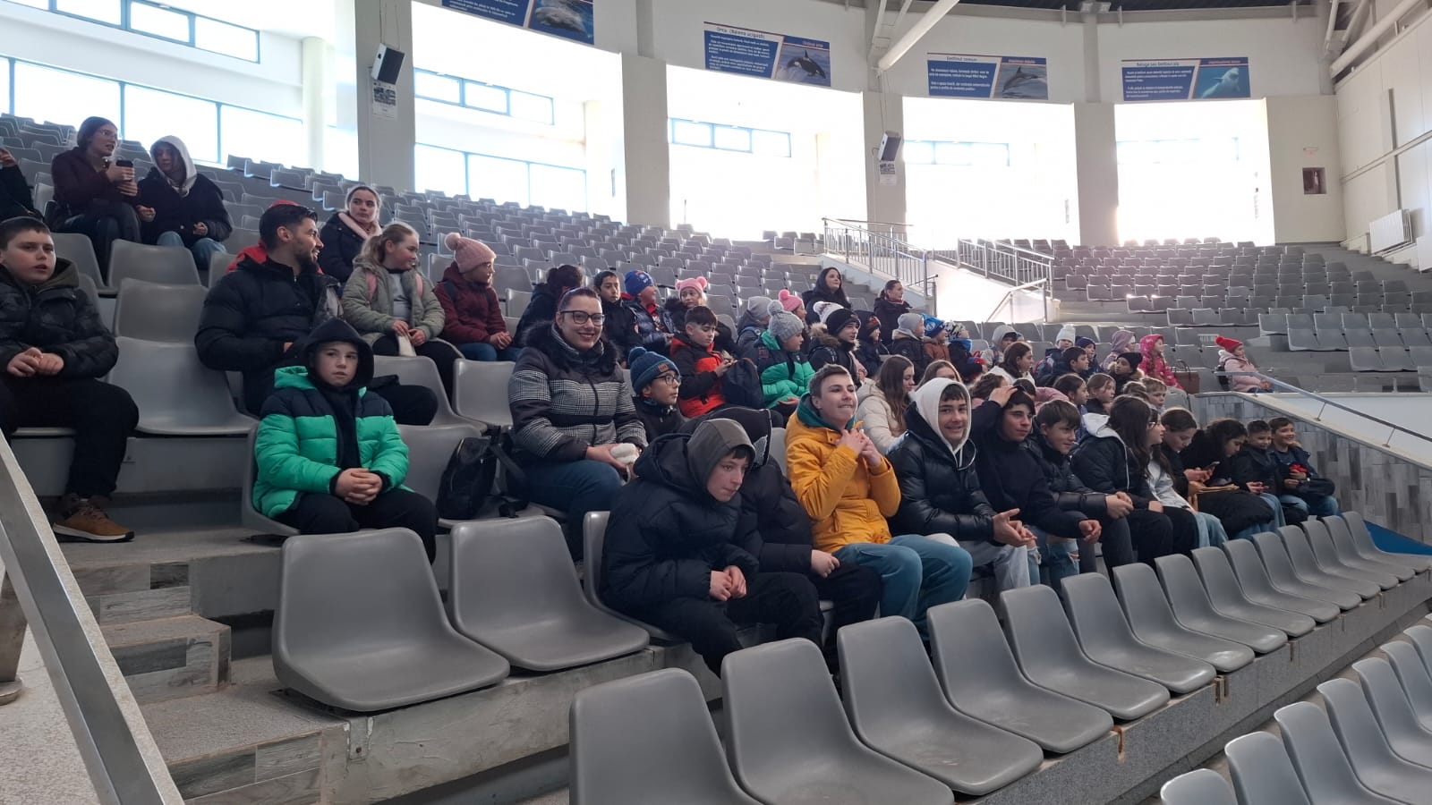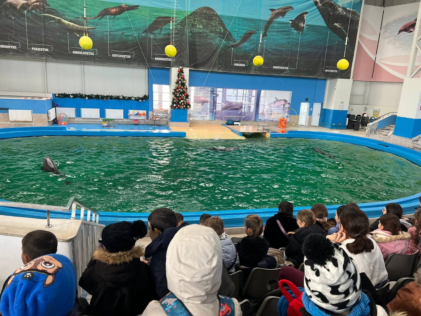 Vizita dumeavoastră poate continua cu vizionarea unei demonstrații excelente cu delfii antrenați de către echipa de antrenori. Cu această ocazie vă puteți bucura de salturile jucăușe ale acestora și de numerele care demonstrează încă odată relația atât de apropiată dintre om și aceste mamifere inteligente și.....permanent surâzătoare de la care învățăm să trăim la maximum și să ne bucurăm de fiecare moment din existența cotidiană! În cadrul demonstrației veți afla informații interesante legate de comportamentul acestora, alcatuirea lor, detalii legate de hrana specifică precum și speciile din care fac parte. În holul Delfinariului puteți vizita o expozitie inedita care vizeaza costumele de scafandru și detalii ale activității specifice de scufundare, precum și o expoziție cu lucrari ale copiilor dedicate materialelor reciclabile.